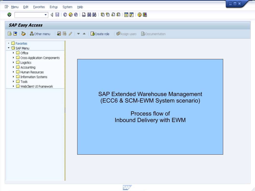 - Move from "GR-ZONE" to "EWM Execution Bins" (for EWM Work Center further processing like Packing, Deconsolidation, Oiling, EWM QM or EWM with External QM etc).